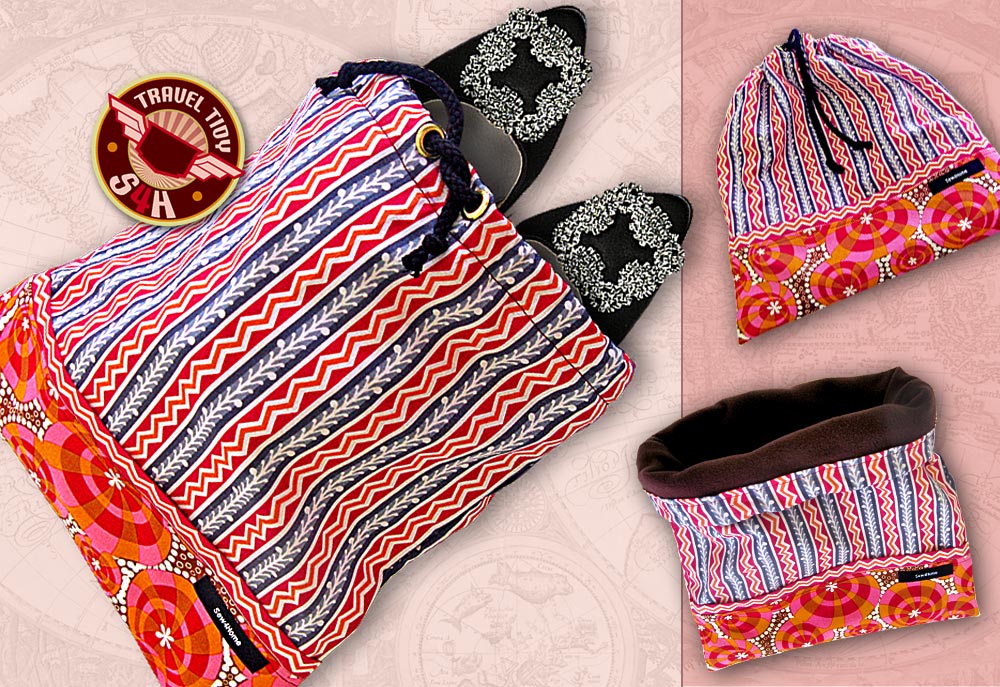 Packing shoes is always a bit of a challenge for me. If they are at all dirty, I feel I need to take the extra time (who has extra time?!) to wash them before packing. If they have heels, I’m always worried the heels will snag other items and so have to take extra time (see above) to plan what to put on top of the shoes in my suitcase. Instead, why not whip up a few of these quick and easy shoe bags. The bag is sized to fit a standard pair of women’s shoes with a generous heel. The inside is soft fleece, which is gentle on leather and helps protect a shiny or embellished finish, such as beading or sequins. From the outside, there’s no worry about what to pack on top. A little extra time today to make these cute bags saves a lot of extra time packing down the line.