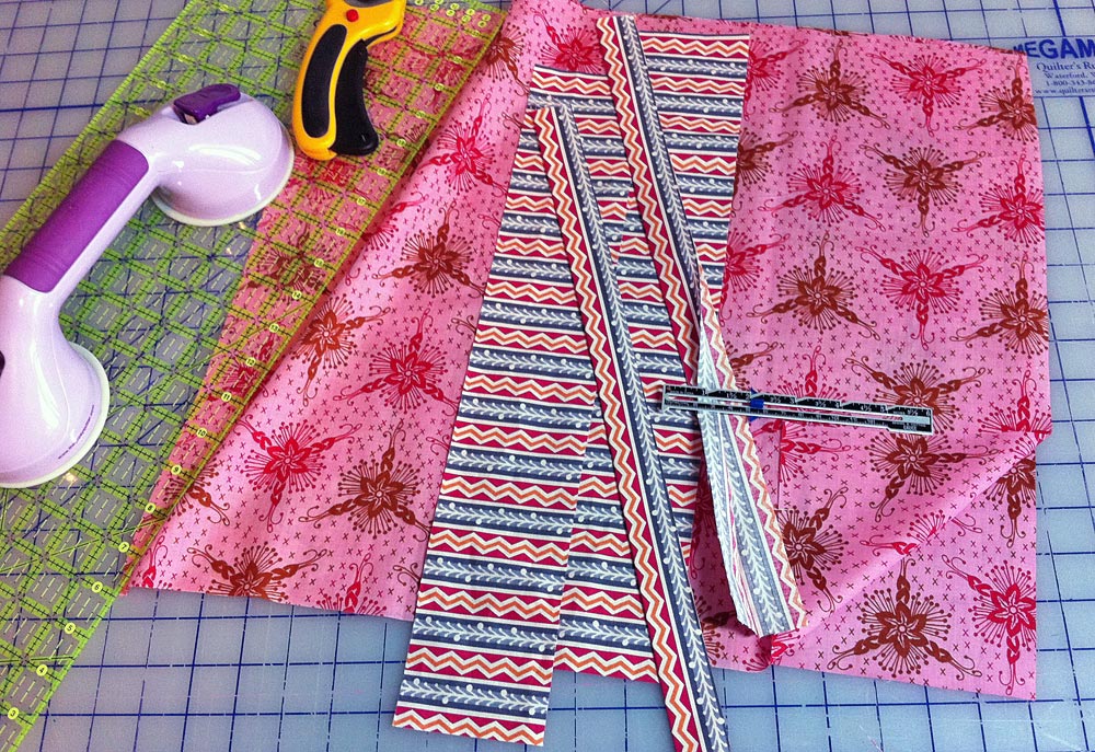 ONE 17″ x 40″ Rectangle - From the fabric you are using for the top of the bag (Loulouthi Fox Trot in our sample), cut: