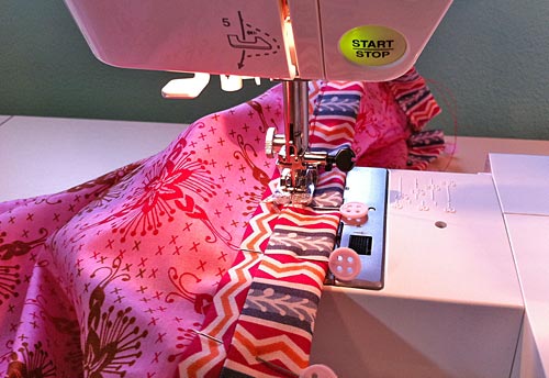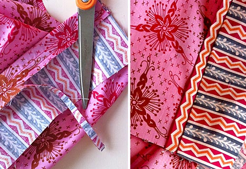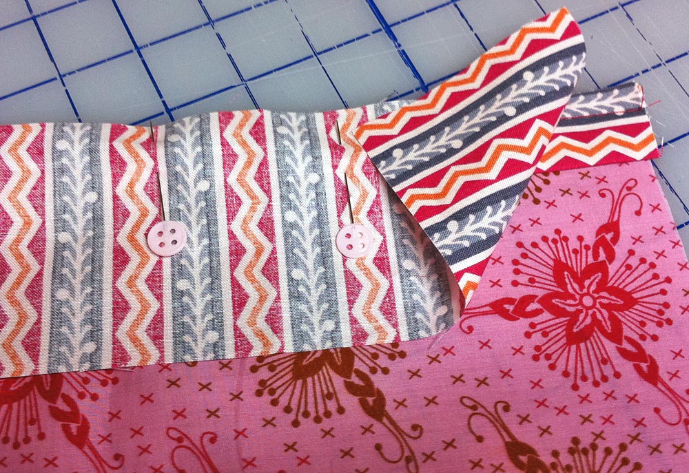- To reinforce the sides, stitch back and forth between the front and back pieces just above the side seam. Keep the reinforcing stitching exactly in line with your original stitching.