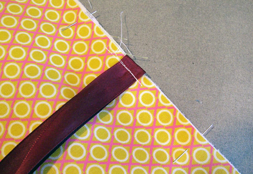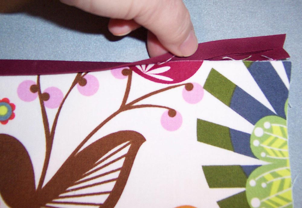 - Repeat these steps to apply bias binding to the upper edge of the two remaining pockets (the upper and lower pockets).