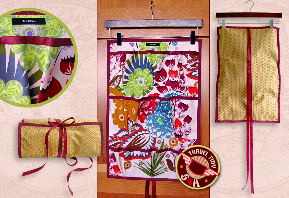 Mark Twain, one of my personal heros, had these wonderful thoughts on the topic of travel: “Twenty years from now, you will be more disappointed by the things you didn’t do than by the ones you did do. So throw off the bowlines, sail away from the safe harbor. Catch the trade winds in your sails. Explore. Dream. Discover.” It’s the season to pack your bags and venture onto new paths. But… you can’t face new adventures without a bag full of your familiar stuff! We’ve come up with a series of nine travel accessories created in Anna Maria Horner’s beautiful new Loulouthi fabric collection for Free Sprit Fabrics. This unique series is part of our second Free Spirit Artist Trio Series, which features Anna Maria. Today, we start with something to organize and hold the one thing you simply cannot forget: your underwear. Our eight-pocket lingerie caddy rolls up to discreetly stash your unmentionables in a tidy package within your suitcase.