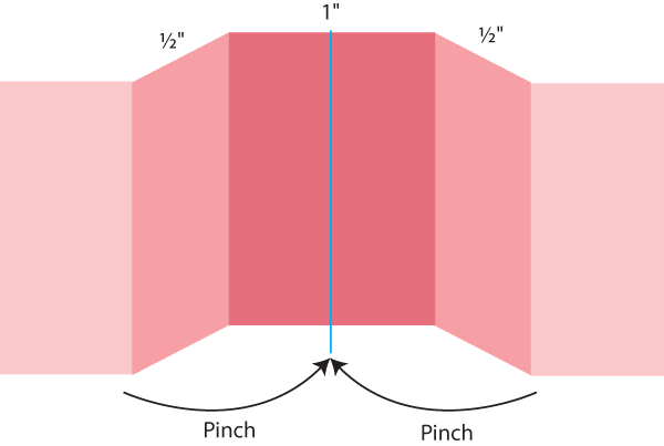 - Create two 1″ pleats following the same steps as for the upper and lower pockets.