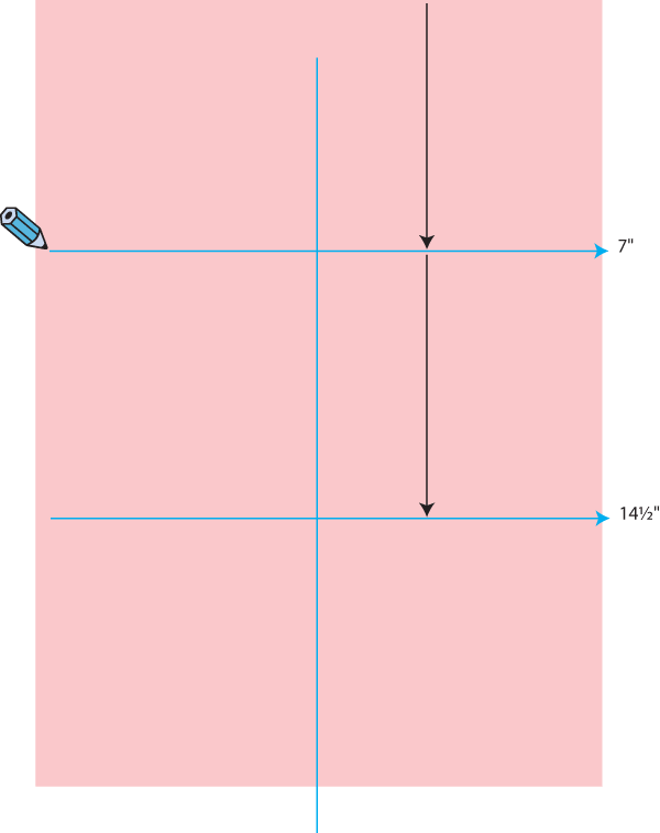 - Mark the position of the pockets with a horizontal line 7″ from the upper edge of the caddy for the first row of pockets and 14½” from the upper edge of the caddy for the second row of pockets. The third row of pockets will be aligned with the lower edge of the caddy.
