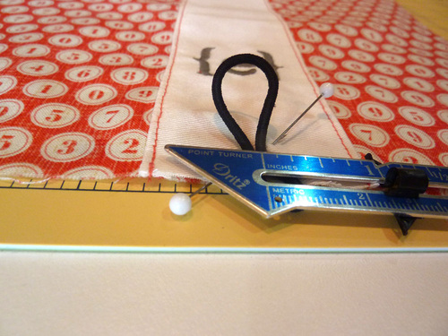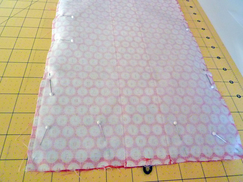 - Pin in place along the all sides, leaving an approximate 7½” opening along the bottom of the interior/top of the exterior edge.