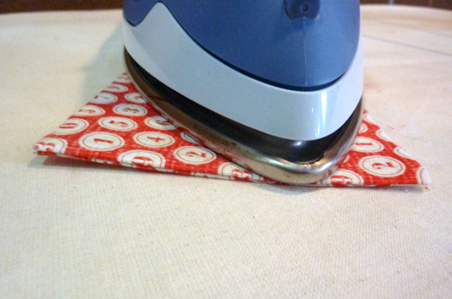 - Turn right side out through the opening. As above for the pockets, use a blunt-end tool, such as a long knitting needle, chopstick or point turner to gently push out the corners so they are nice and square. Press flat.