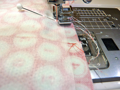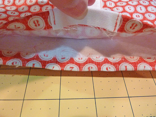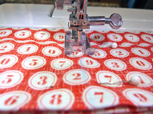 NOTE: We used our Zipper foot for this seam because of the bulky edges of the pockets sandwiched between the layers. This foot allowed us to get in close for a nice, straight seam.