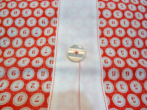 - ONE ¾” – 1″ button; we used a white button from our stash to coordinate with the round number motif in the fabric