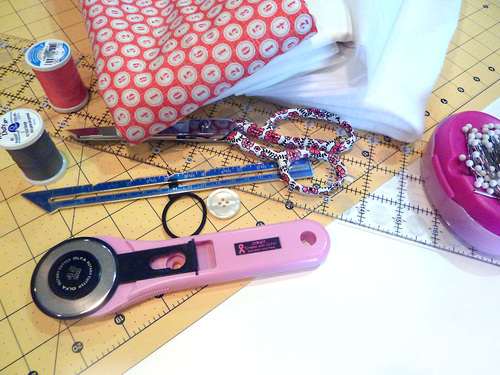 - Embroidery thread to coordinate with the main fabric for optional monogram; we used steel gray