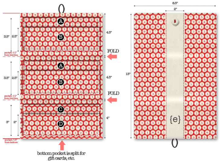 ONE 9″ wide x 7″ high rectangle for the C pocket