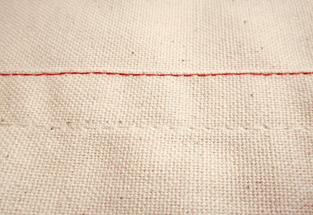 - Thread your machine with contrasting thread in the top and bobbin. We used a bright red.