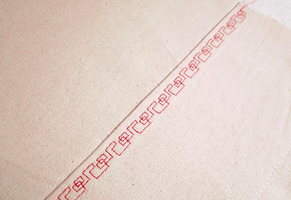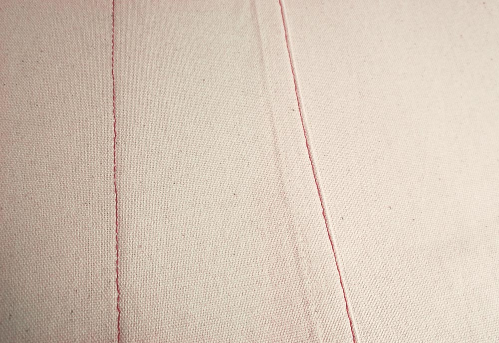 - As we mentioned above, as a decorative alternative, you could use matching thread in the top and bobbin to do the stitching on the back, then switch to a contrasting thread and a wide decorative stitch to do the stitch lines on the front. This means you would only see four lines of stitching on the top as opposed to the eight in our original design.