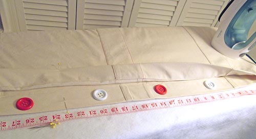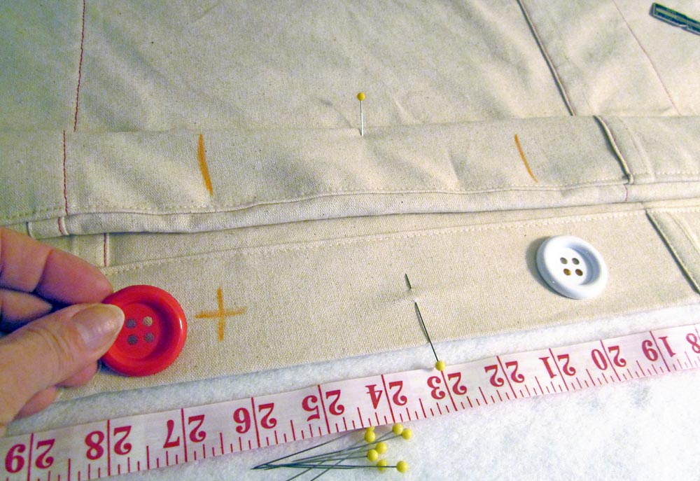 - Mark the position of each button. Then, mark the position for each buttonhole exactly opposite the button within in the hem of the duvet FRONT panel.