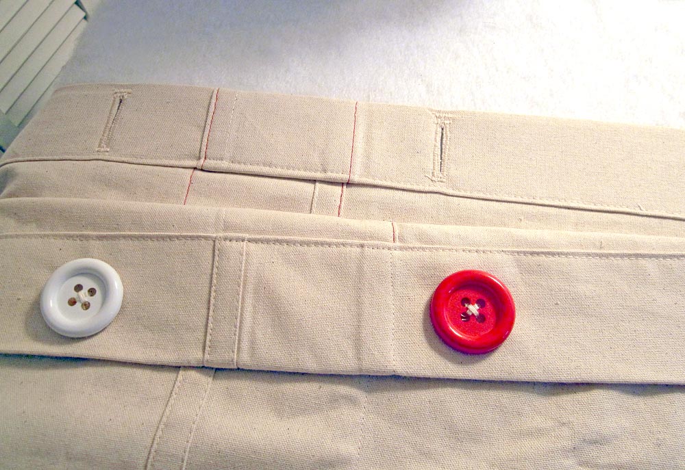 NOTE: This is S4H sewing team member, Kathy Andrew’s secret trick: When you have these four colored ribbons sewn into the corners of the duvet cover, you then stitch matching ribbons on the four corners of the duvet itself. Make sure the ribbons are colorfast so they do not bleed in the wash. Kathy likes to use lightweight seam binding tape. When the duvet cover comes out of the wash, lay it on the bed WRONG side out. Lay the duvet on top of the cover, matching the ribbon colors. Tie the ribbons together in a little bow, then turn everything right side out. The duvet will end up in position, flat and secure every time! - Okay… back to those buttons and buttonholes.