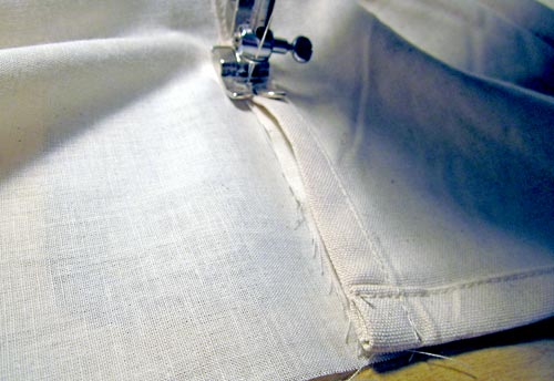 - As you did on the reverse side, edgestitch as close as possible along each pre-hemmed edge from top to bottom.