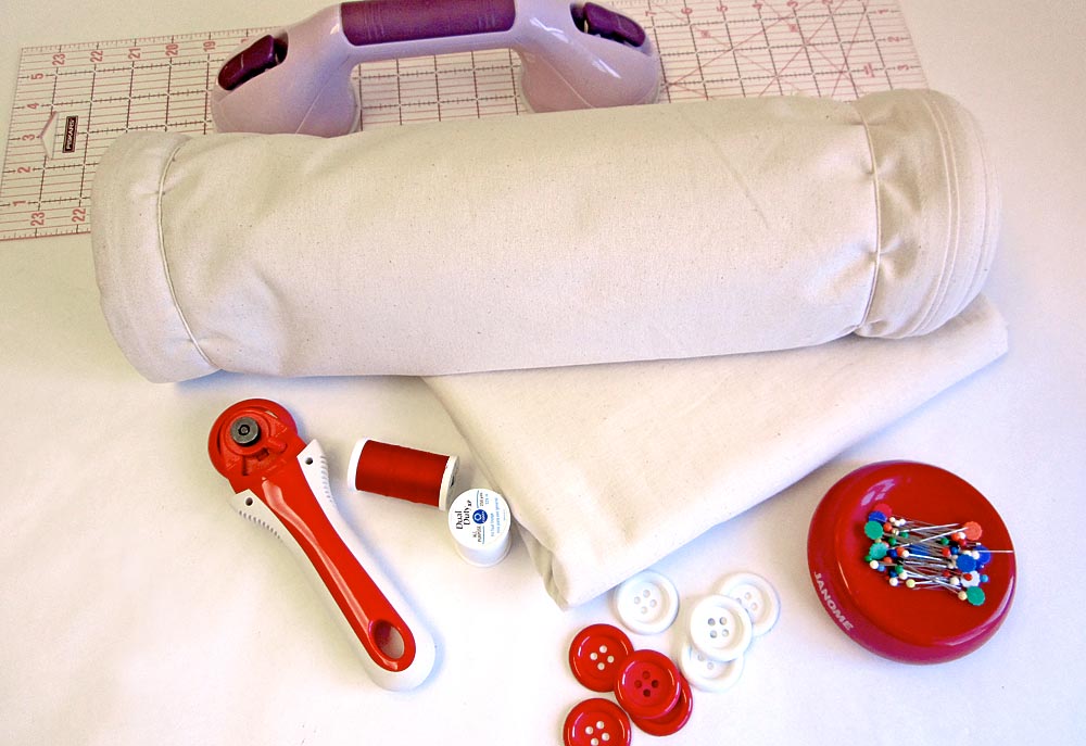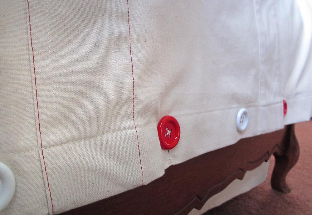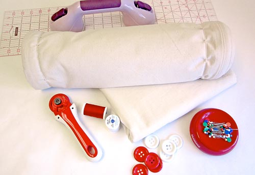 NOTE : You could also use a plain cotton fabric or even a purchased bed sheet for your duvet cover back (see Getting Started below for the math to figure your size). - Six 1″ – 1½” buttons; we used 1¼” plastic buttons, three in red and three in white