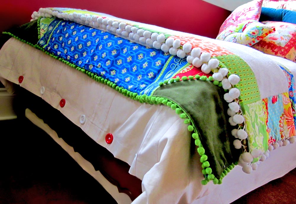 We used nearly 32 yards of toweling for our duvet and bed skirt samples and are very thankful our friends at Fabric.com were able to rush us all the yardage in time for our photo shoot. They get the Sponsor Gold Star Award ! As always, the fabric arrived very quickly, no muss no fuss! Fabric.com is so very, very easy to work with. Visit Moda to see all the toweling options.