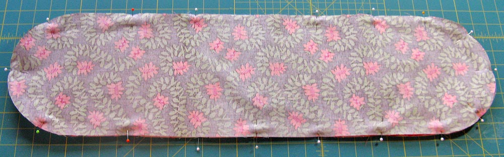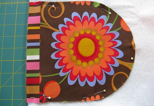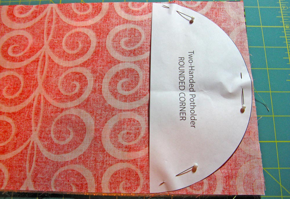 - Pin the Rounded Corner Template in place on one end. Align the side edges and bring the curve very close to the raw edges. Pin and carefully cut.