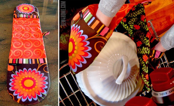 I don’t know about you, but I always set down my potholders on opposite sides of the kitchen so when I need both to pull something out of the oven or off the stove, I never seem to have two within reach. Problem solved, and a very pretty solution to boot!