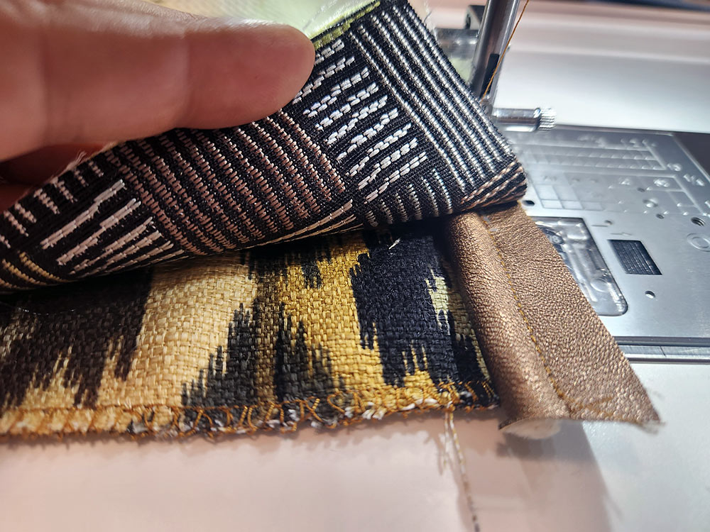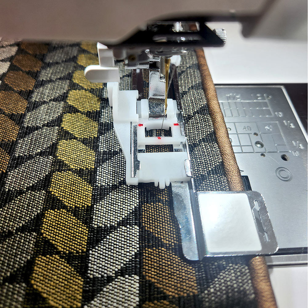 Janome machines are known throughout the industry for their stitch precision and needle penetration power. That makes everything easier! As you go through the step-by-step instructions below, you’ll see we detail which presser feet we used to make a specific task easier as well as a few special tips for working with the faux leather we used for our piping accents, and some seam finishing suggestions to keep things smooth and even. You might also want to check out our full tutorial on How to Sew Thick Layers.