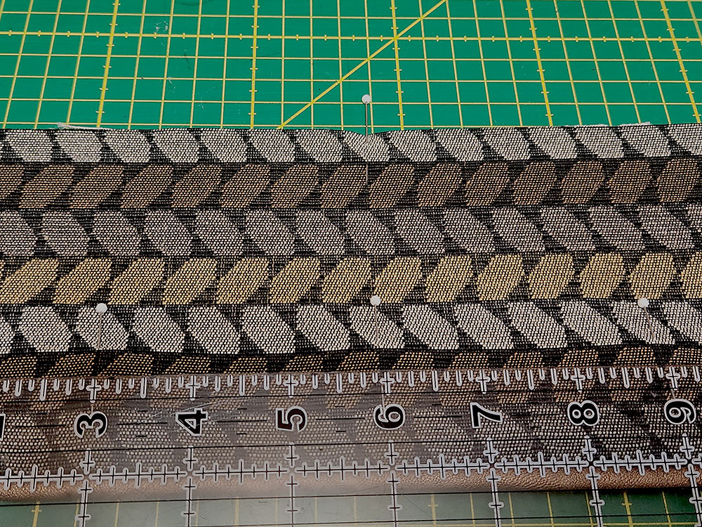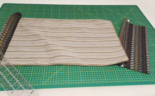 - When done, your top and bottom raw edges may be slightly uneven; this is common when seaming together several panels and especially common when working with a variety of substrates and/or thicker layers. Using a see-through ruler and rotary cutter, even up the top and bottom of the panel. Just slice the smallest amount; you don’t want to adversely affect the height of the panel.
