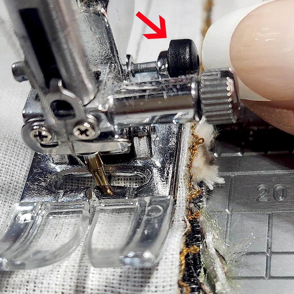 - When set up correctly, this Janome foot will automatically choose the proper size for your buttonhole, so in many cases you can simply position your panel and you’re good to go.