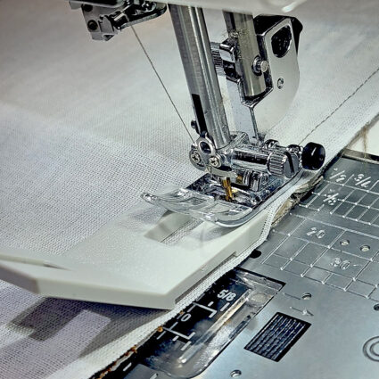 - Let the machine do the majority of the work – don’t aggressively push or pull the fabric.