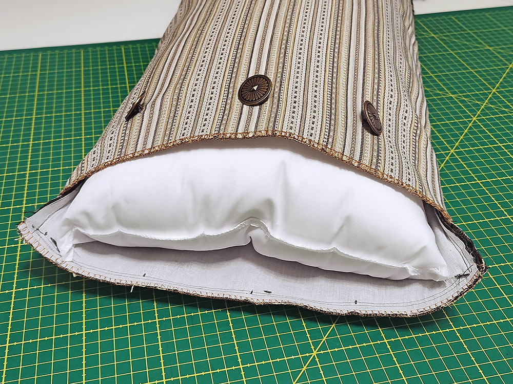 - When everything is complete, open up the overlap all the way, folding it back in order to create the widest possible opening for you to more easily slip in the pillow form.