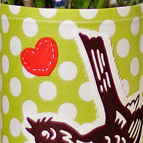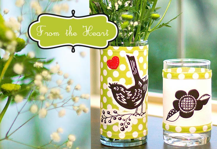 A little bird chirps a heartfelt message to someone special. These sweet vase wraps turn fabric scraps into your personal message board. Tweet it as we did, or say it your way.