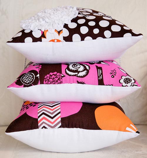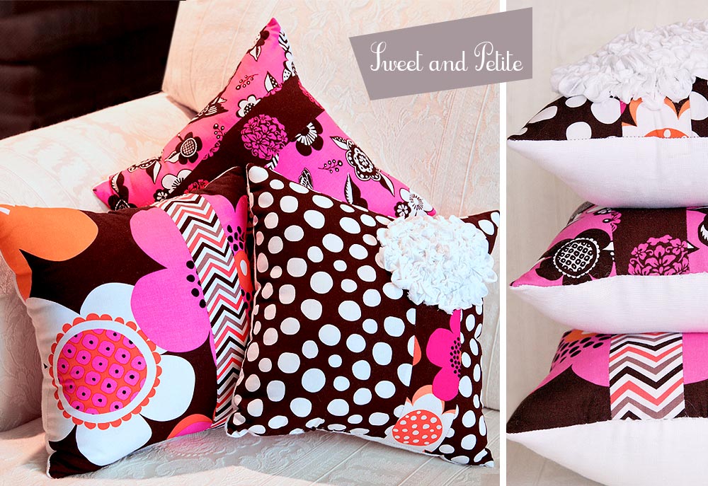 These three throw pillows look very different don’t they? Look again. They are the exact same pillow pattern – just with different fabric combinations, and one with a ruched flower embellishment. Clever mixing and matching isn’t just for your clothes closet.