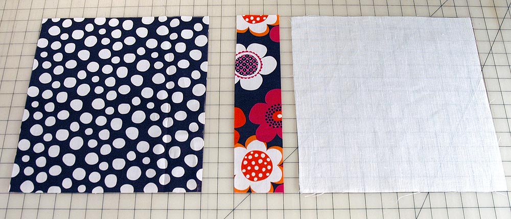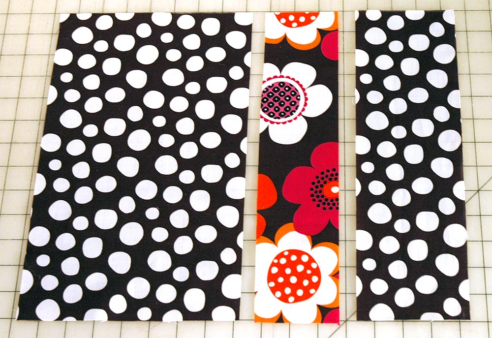 - Arrange the two pillow front pieces with the stripe inset between them. These three rectangles will make up the pillow front.