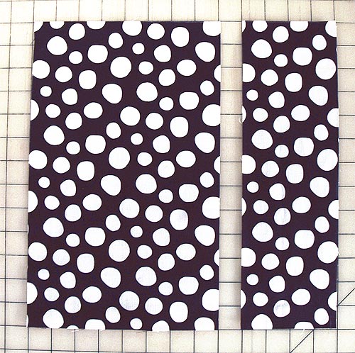 - Use your see through ruler to cut the pillow front rectangle (the 12″ x 13″ piece) into two pieces: one 8″ x 13″ and one 4″ x 13″.