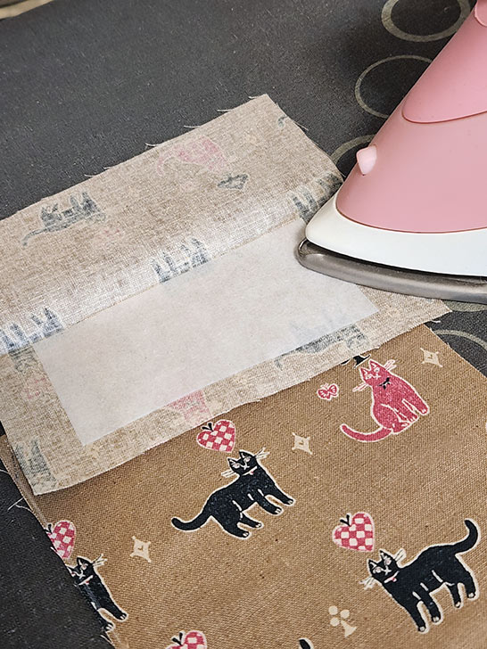 - Find the flap and its appropriate interfacing piece. Repeat to apply its interfacing in the same manner.