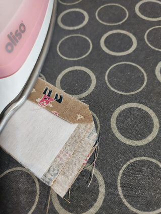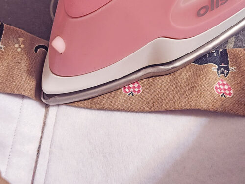 - Turn down the top raw edge ½” and press.