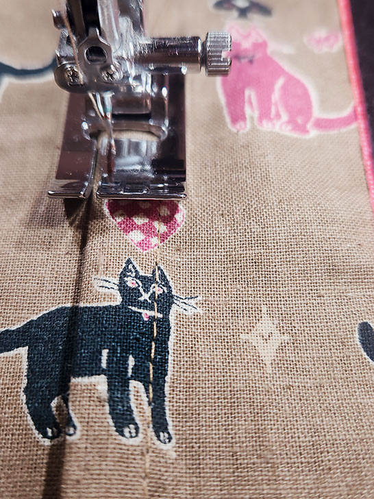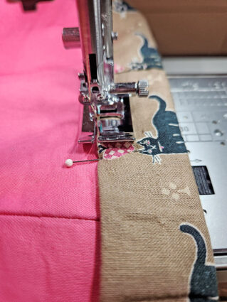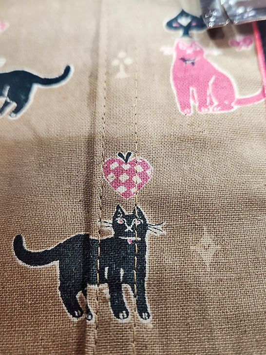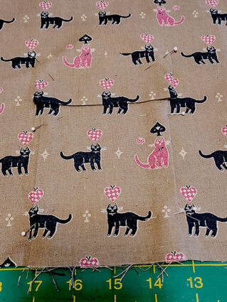 NOTE: If you have a strong horizontal motif as we did with our rows o’ kitties, fussy cut your panels in a line across your fabric so when all the panels are seamed together, the rows will align.