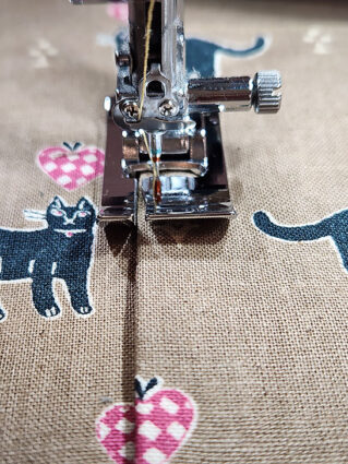 - Re-thread the machine with the contrasting topstitching thread in the top and bobbin. Re-set for the slightly lengthened straight stitch.
