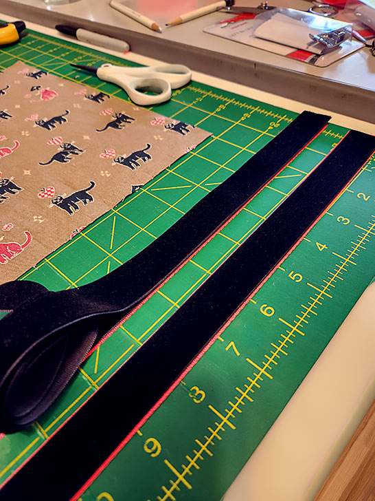 - ½” wide fusible seam tape; optional but our recommendation for holding the webbing and velvet layers together during construction