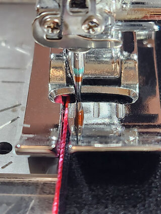 - Then switching to stitch down the opposite side with the Left Bi-Level foot. Remember our note above about how important it is to stitch in the same direction along both sides.