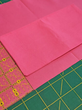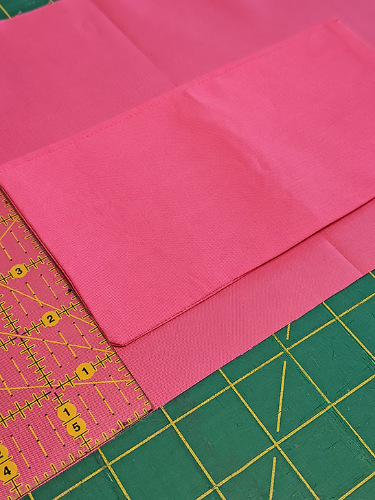 - Fold the pocket panel in half right sides together so it is now 9” x 4½” and press to set a center crease.