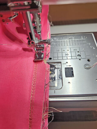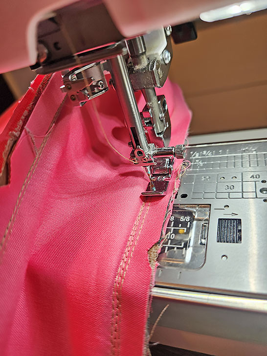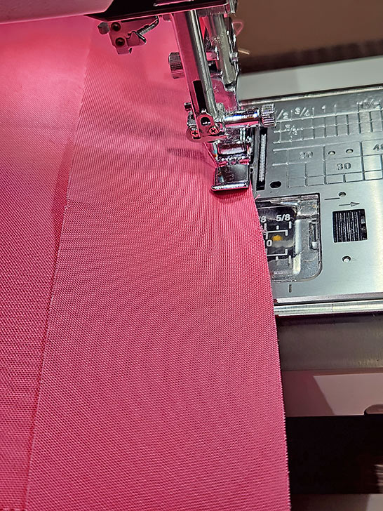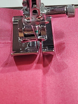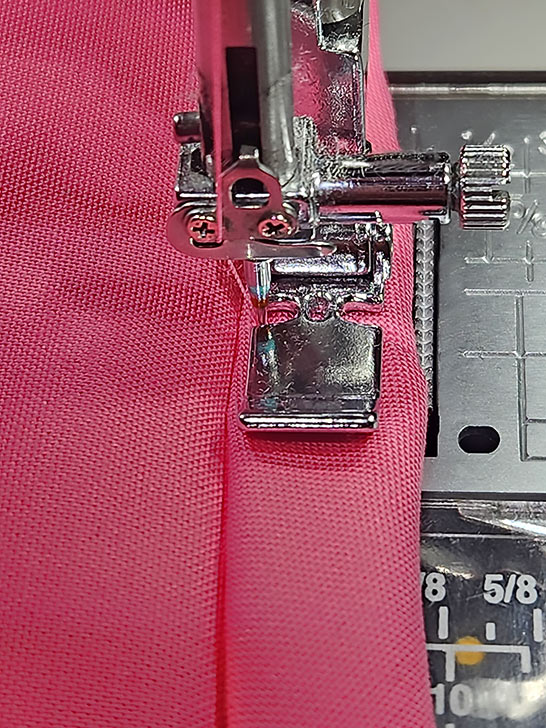 - We again switched to our Left Bi-Level foot to stitch the final seam. Slightly lengthen your straight stitch. This seam in an edgestitch along the fold.