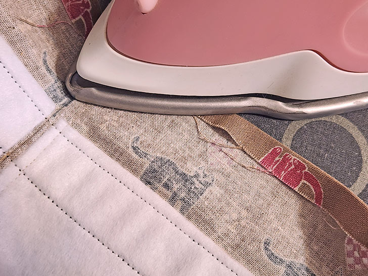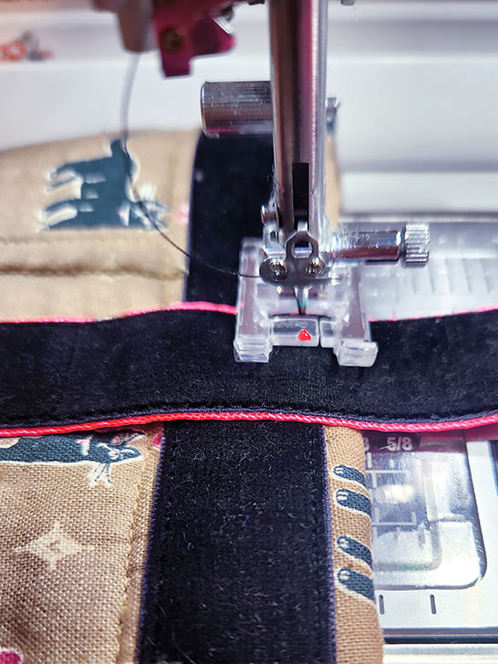 - Stitch in place through all the layers to secure the binding. This in another good opportunity to use your free arm.