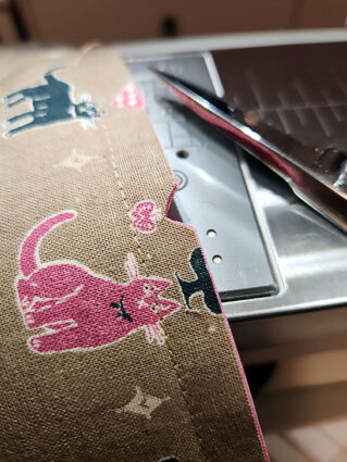 - Open up the seam allowance and trim back the side panel half of the seam allowance to ¼”.