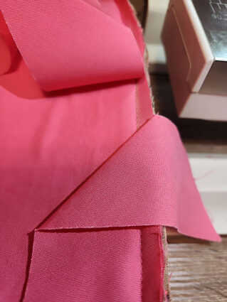 - Prior to binding, trim back the seam allowance to ¼”, and if you have a particular heavy exterior fabric, you can also grade the seam.