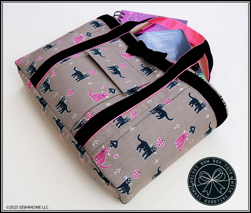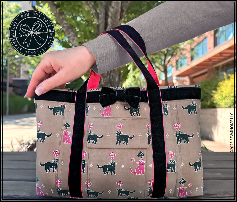 If you’re a S4H regular, you know another of our rooftop-shouting-mottos is, “We love to fussy cut!” This tote is no exception. We show how we pattern-matched our pocket and flap to the background panel and kept our cute kitties all in a row. It’s never mandatory (most design choices in sewing are never mandatory), but fussy cutting always kicks things up a notch. There are also links included below to full on-site tutorials for these techniques and several others as well as links to video summaries on our YouTube channel,