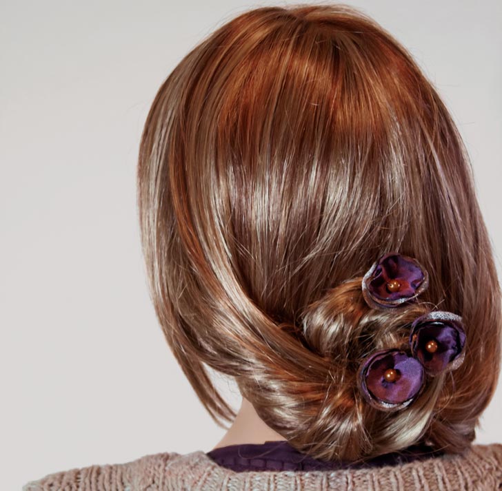 Now you can clip the flowers to your hair, to your elastic ponytail band, or to a headband and position them easily for the looks you like best. Group or wear singly – it’s up to your mood (and your hair’s mood).