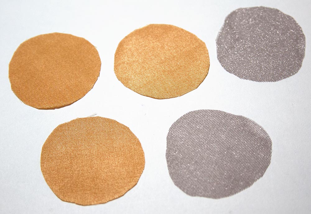 - Scraps of synthetic fabric: we used a sparkly taupe organza, and some scraps of poly lining in plum, gold and sage green