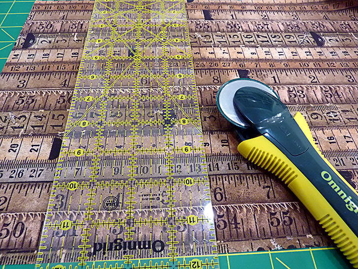 ONE 7¾” x 19” for grid section 10 overlap panel - From Fabric B (Tape Measures in Neutral in our sample), cut ONE 6¾” x 9¾” for grid section 6.