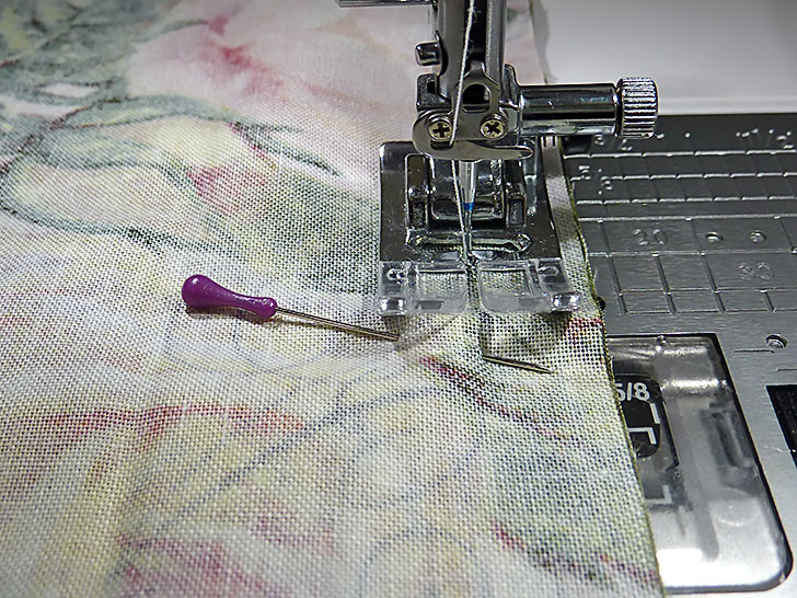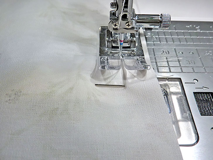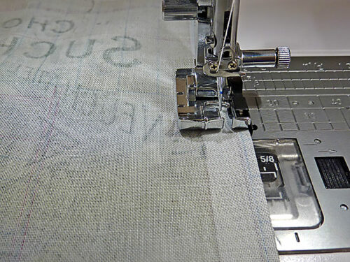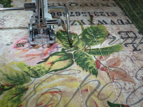 - If necessary, re-thread the machine with the same thread you used for quilting on the front of the pillow. Keep a slightly lengthened straight stitch.