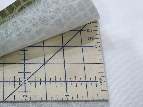 - On the underlap panel, you’ll make a narrow hem. Fold back the raw edge ¼” and then fold back just an additional ½”. Press well.