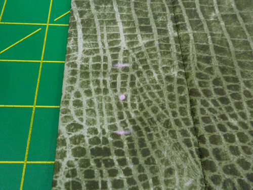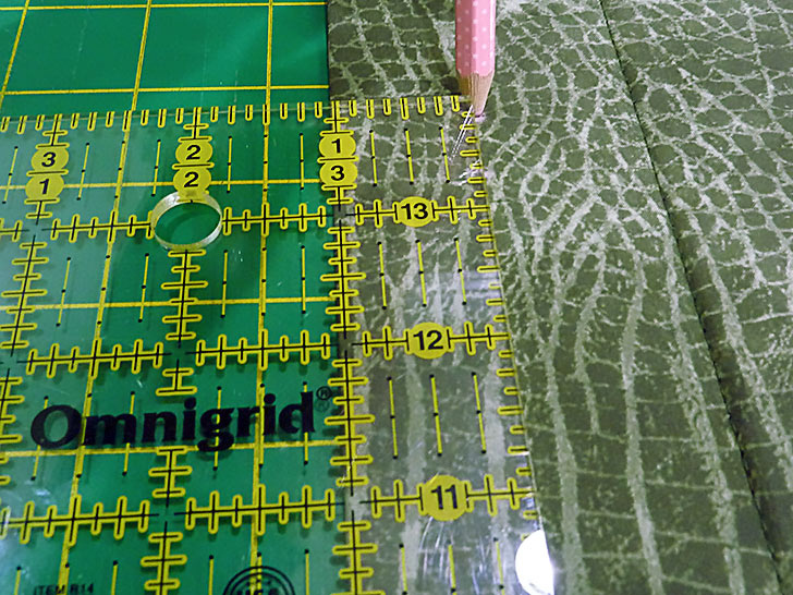 NOTE: Remember, any time you are working on the right side of your fabric, make sure your marking tool is one that will easily wipe away or will vanish with exposure to the air or the heat of an iron. - Again starting from the nearest seam, measure and mark in 1” increments across the section.