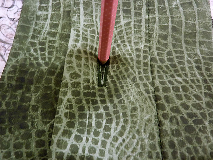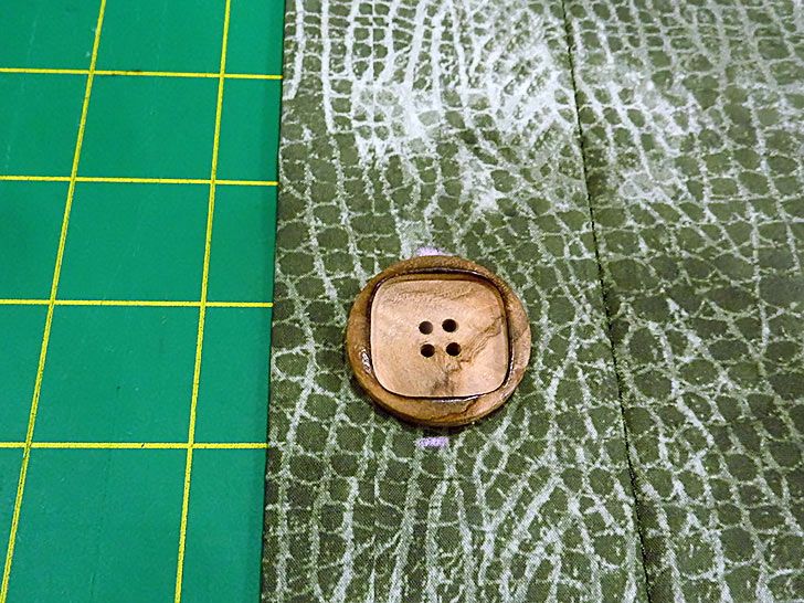 - Insert a fabric pen or pencil through the exact center of each buttonhole to mark the position for each button on the underlap panel below.
